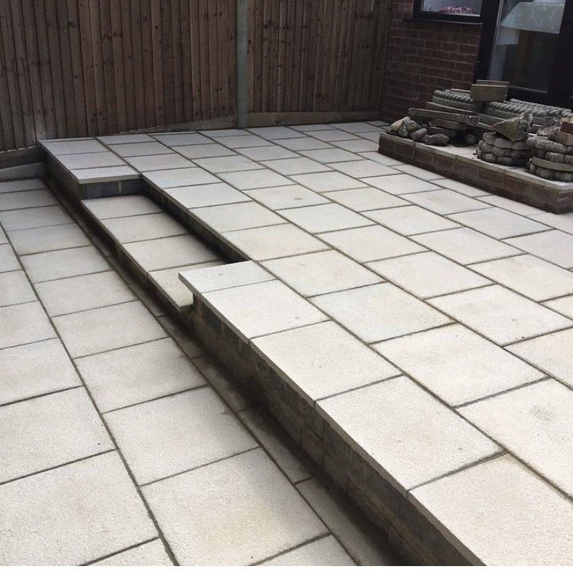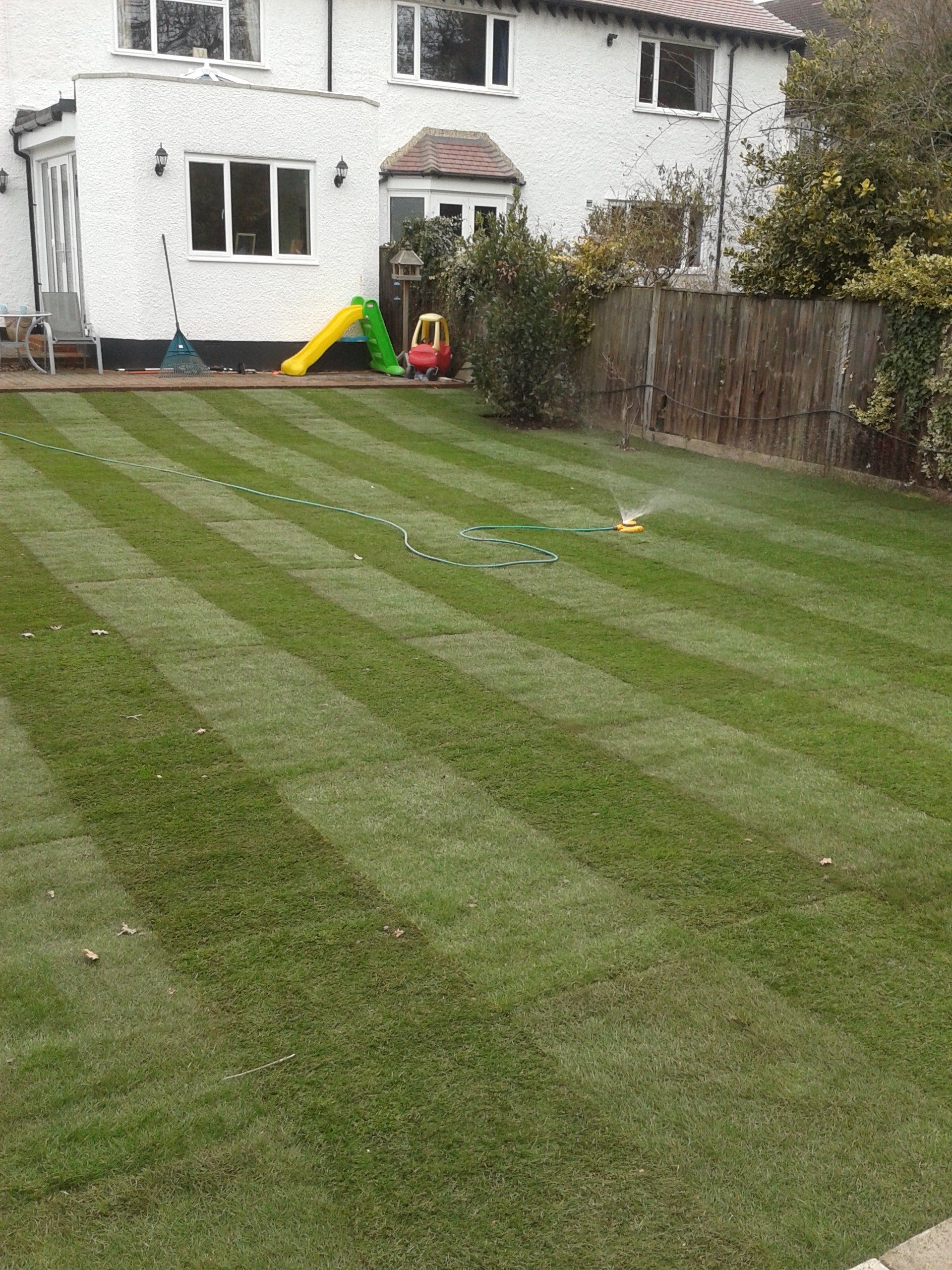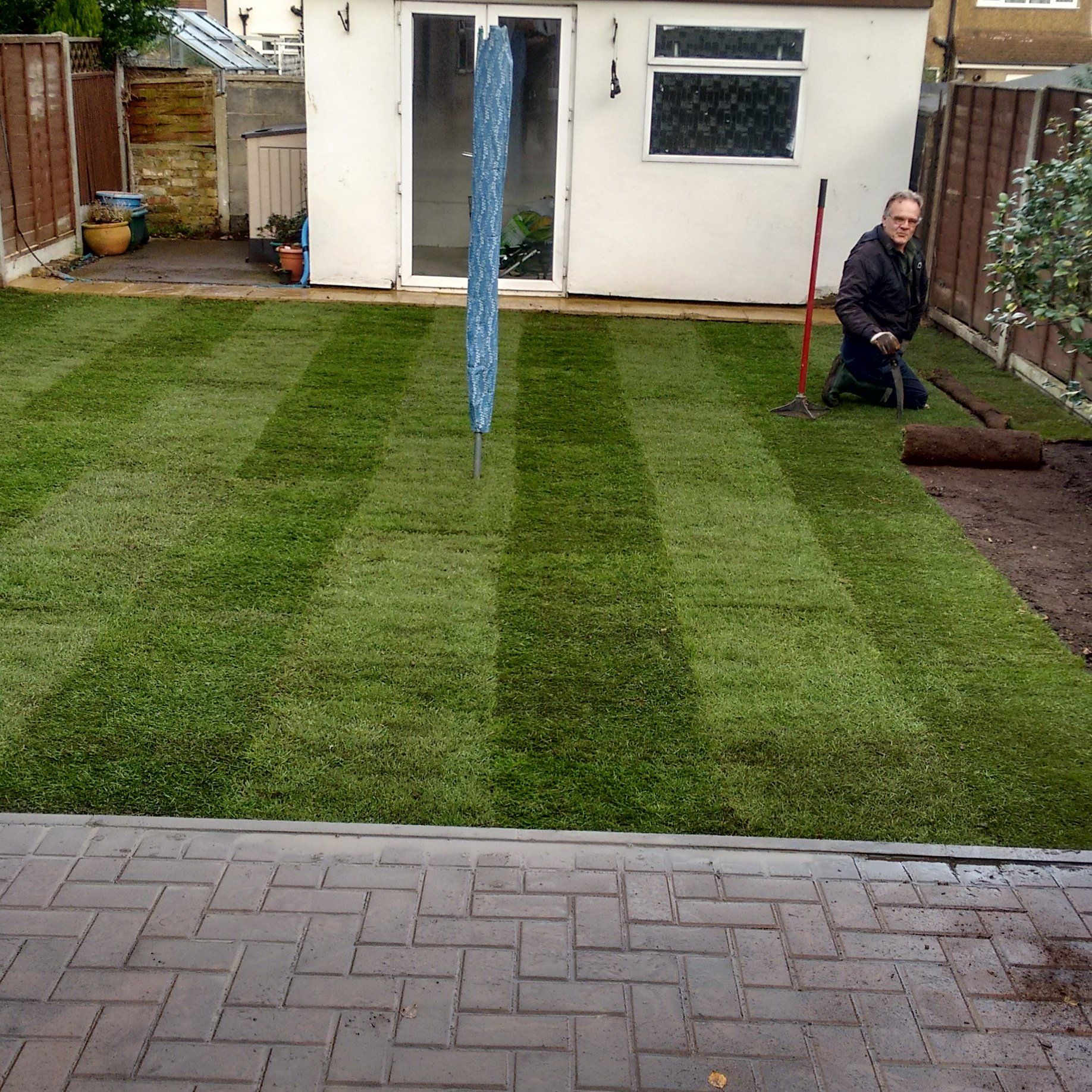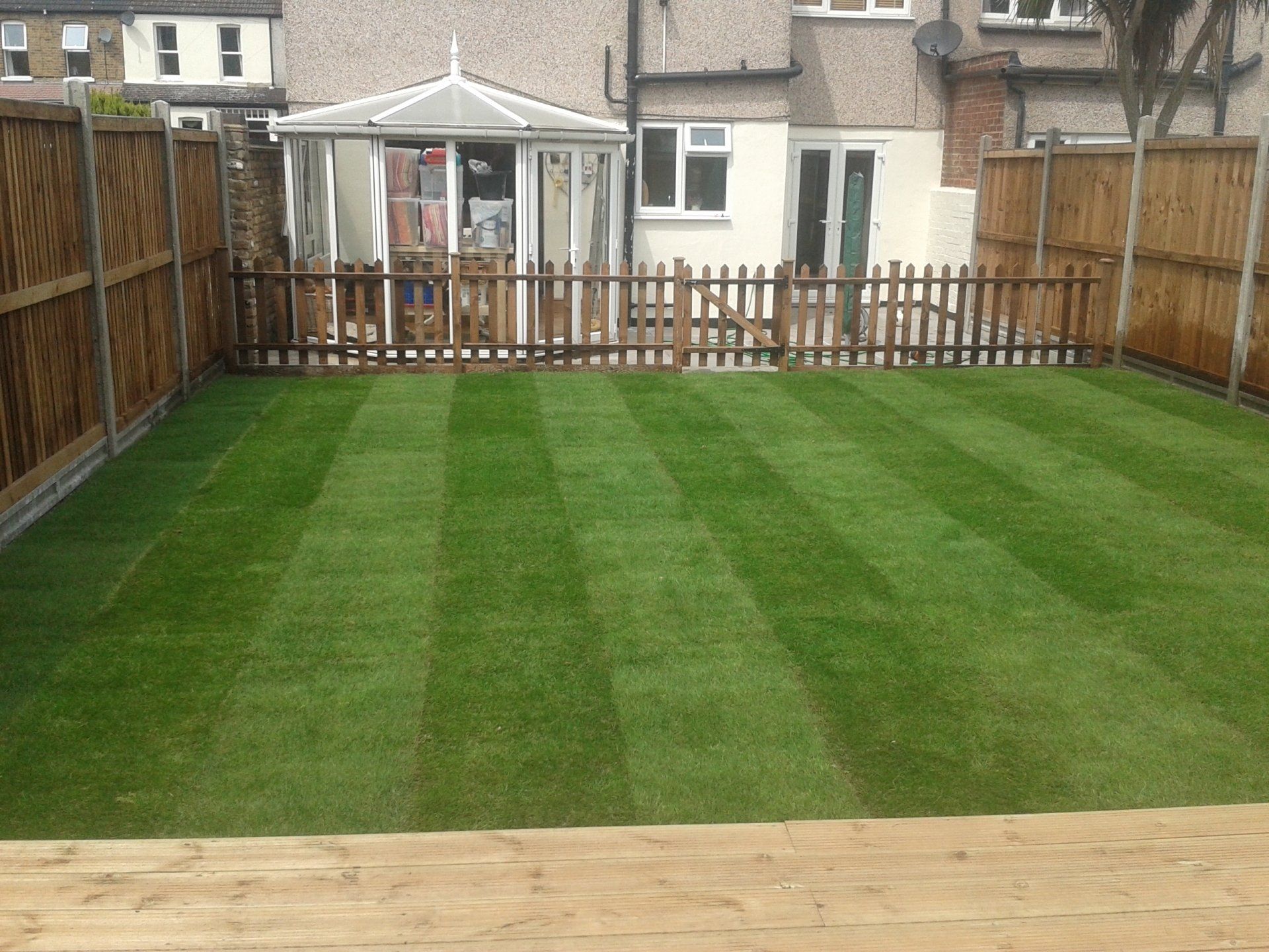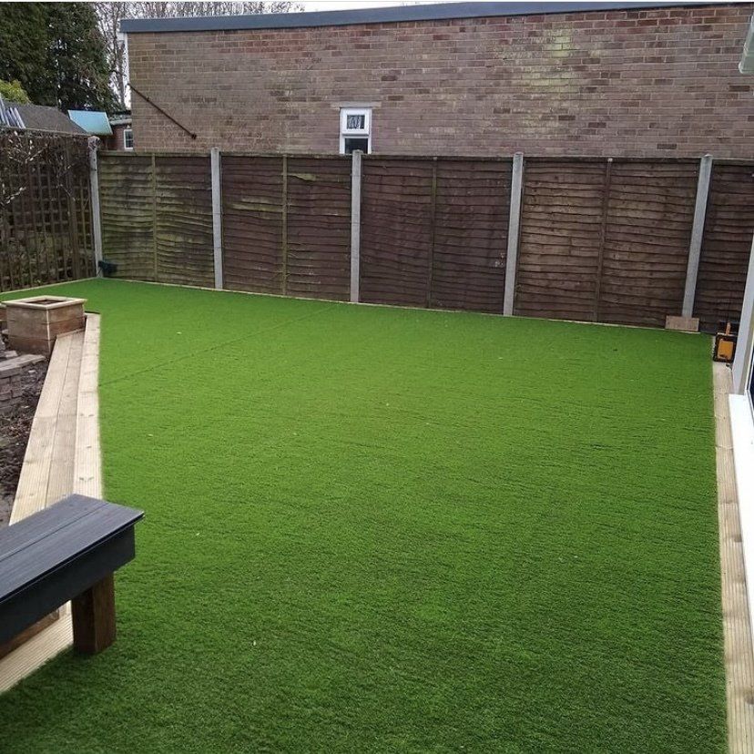 One of our biggest projects to date. We estimate over 20 tons of aggregates, top soil, turf, timber and paving brought in for this job. The end result is a 7m x 8.5m Artificial Grass area. New soft wood Decking, Indian Sandstone Patio and path, with a new lawn surround. What you can't see is a Yew Tree that was dug up/out by hand, an imprinted concrete patch on the existing patio and 18 days of hard work. Well done team, you've done a great job. Thank you.
