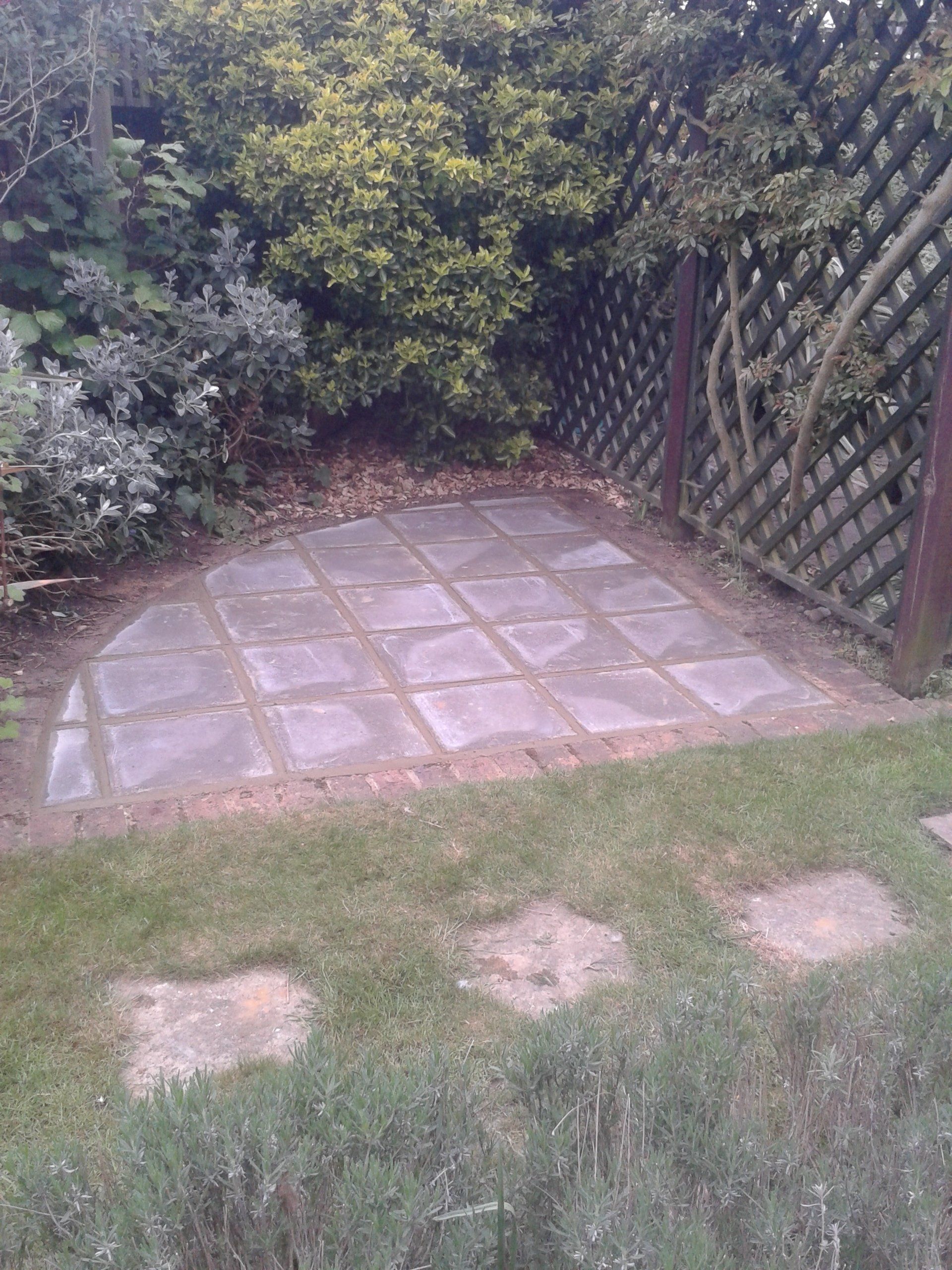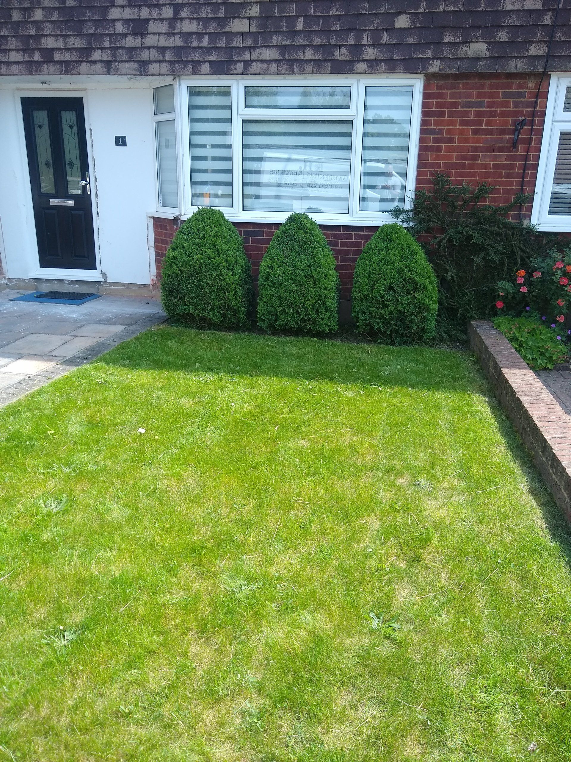 We've been a little short staffed recently (some well earned annual leave taken by the team) so I've been helping out. These pics are from one of our longest standing domestic customers. Today we trimmed the Hawthorne hedge, cut the lawns, planted some shrubs and laid a single Paving Stone for the Bird feeder. It's always a pleasure working in this garden and we never know what we'll be asked to do :-)