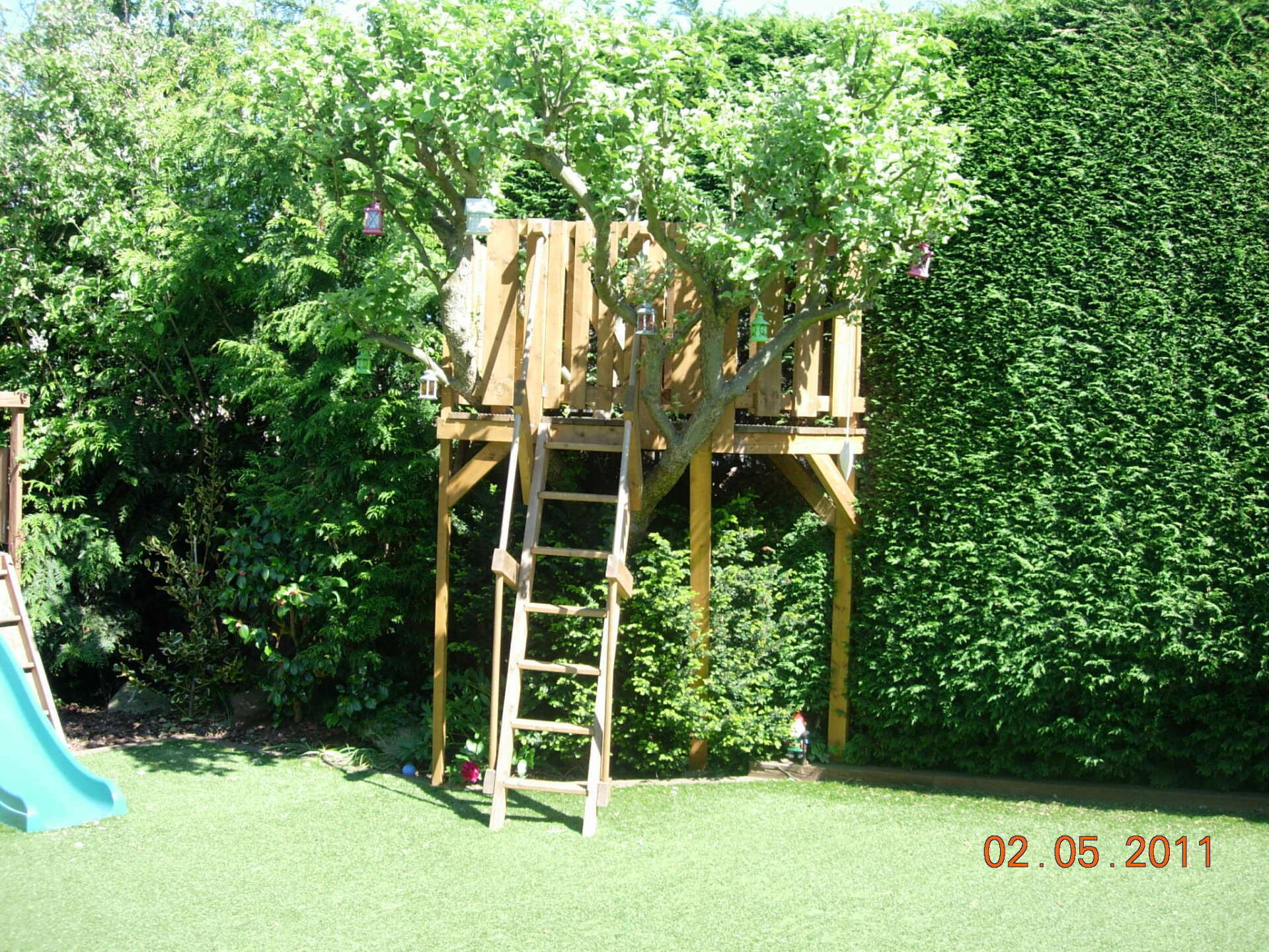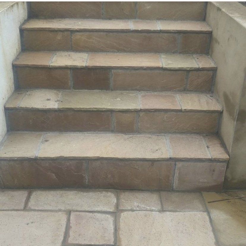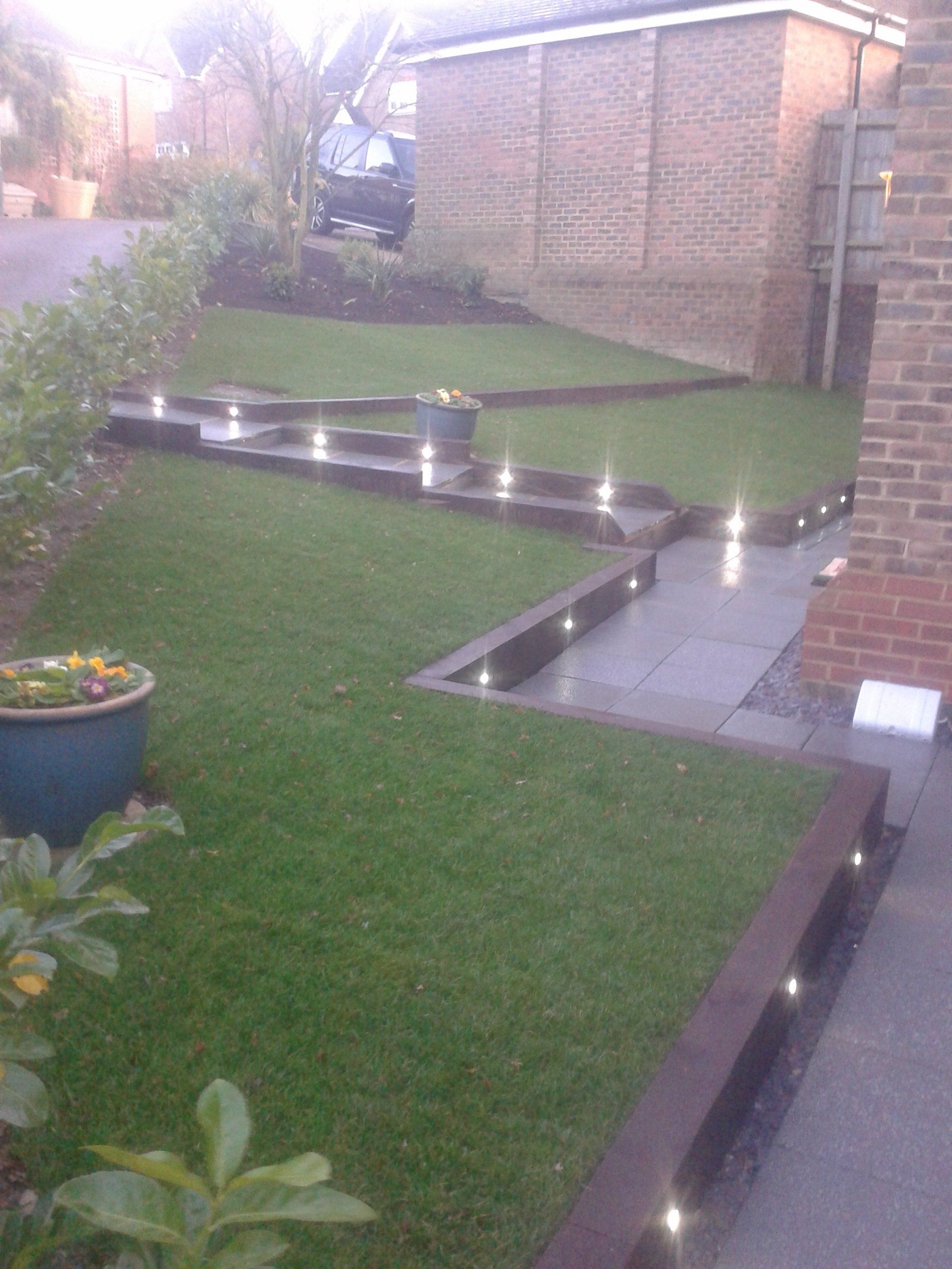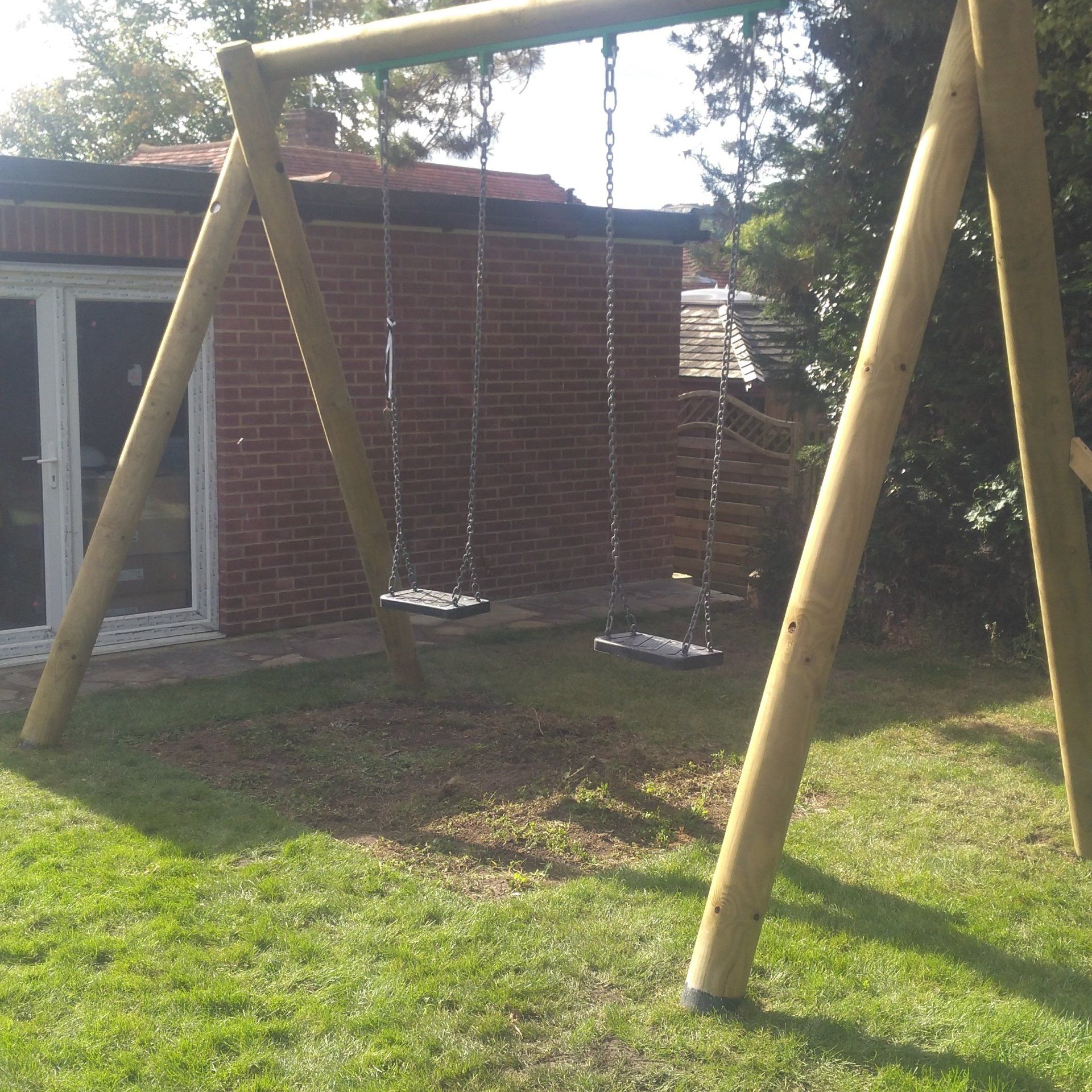 Another nice project completed in April. An unused terraced area, made accessable with new steps and safe with Timber Post, Hand Rails and stainless wire inserts. The paving is Raj Blend Indian Sandstone and we also built a full length 'L' shape timber planter. Finally we painted the Fencing, Steps and Round Timber supports and fitted a new Slide for the children.