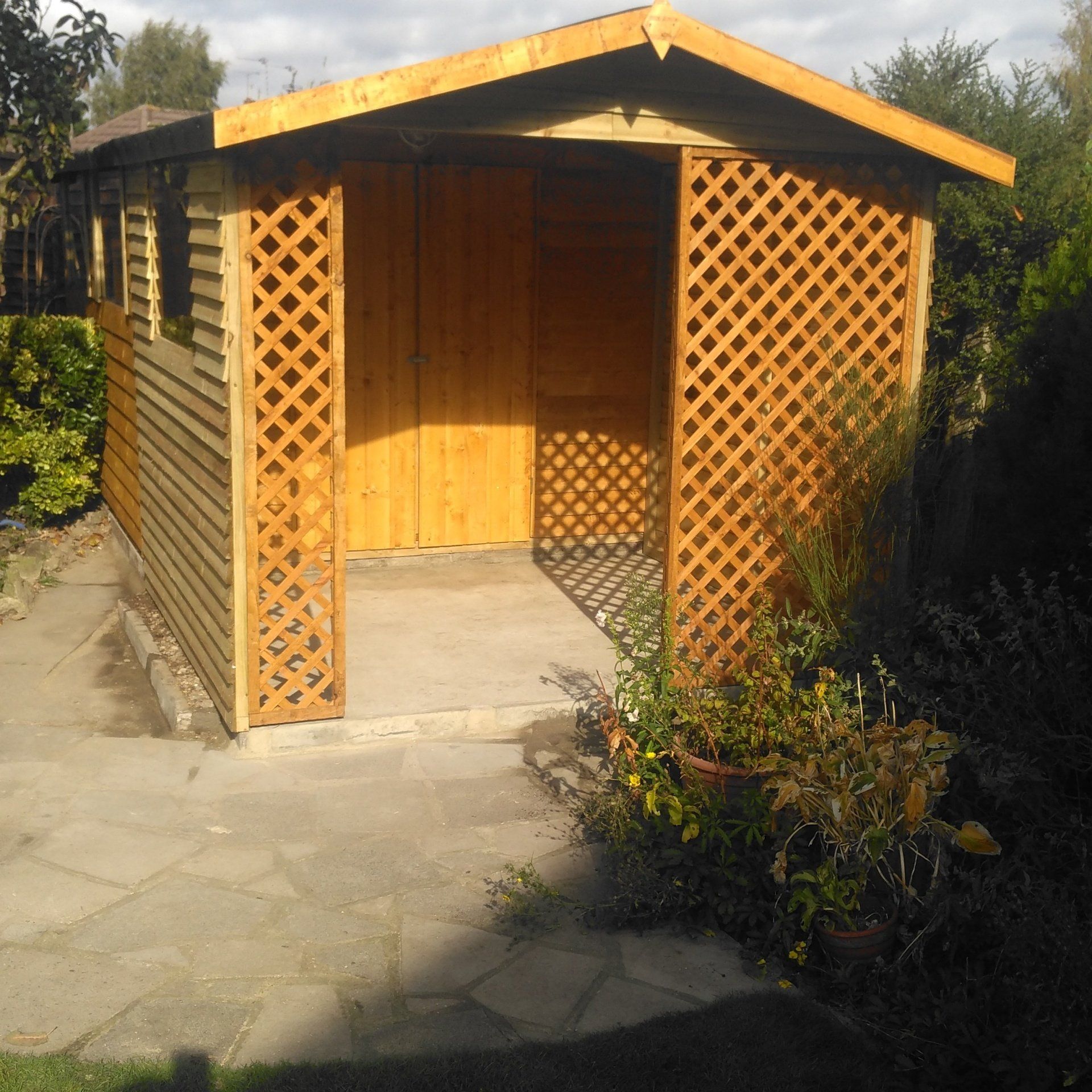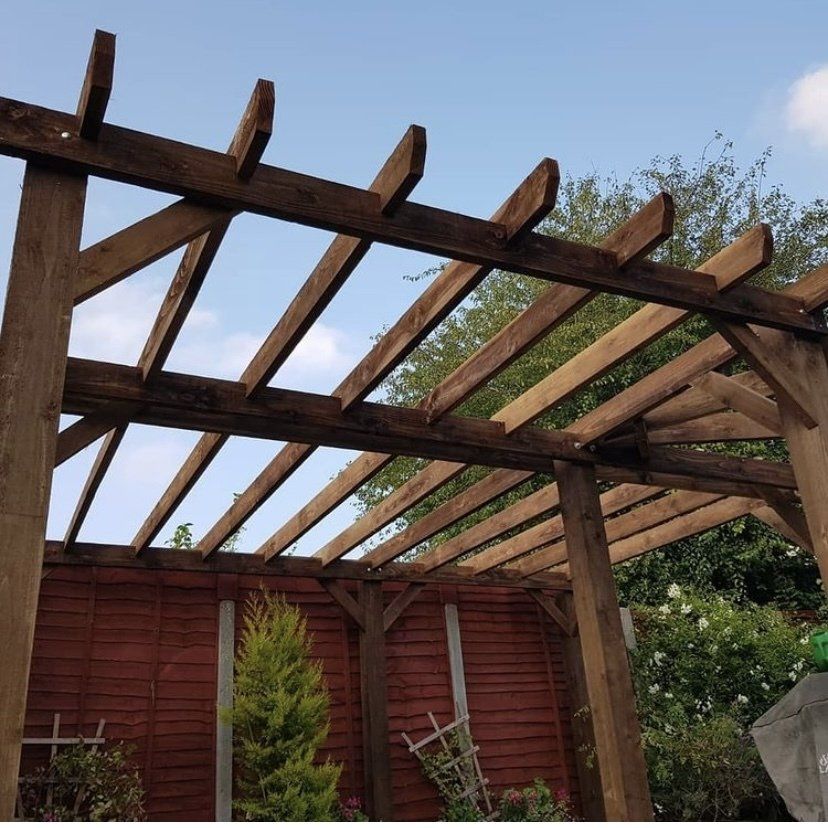 As you can see, another lovely Log Cabin project. This one is almost there, just the floor and Felt Shingles to go. This is part of a much bigger project, we've cleared this end of the garden, trees, sheds, greenhouse etc etc. We also installed the Timber Base for the Cabin and supplied and fitted a gate and a bespoke built Compost Heap made from Pallets. Well done team, you've worked hard 💪